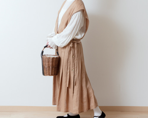 フレンチリネン両サイドリボン2wayギャザーエプロンドレス フレンチリネン両サイドリボン2wayギャザーエプロンドレス 9月