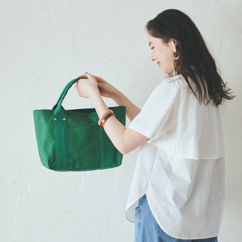 帆布とレザーのトートバッグ 底板付き ボトルグリーン ブラック【M】 大人きれいめ*帆布トートバッグ(ブラック) - P. green | minne